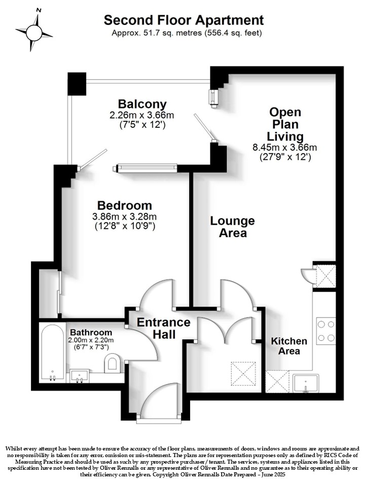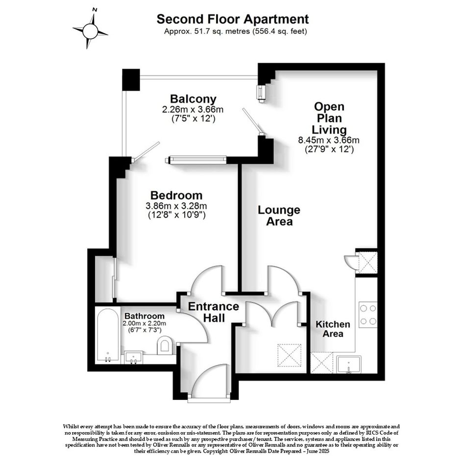 The open-plan kitchen and living area is equipped with high-quality integrated appliances, including a Zanussi dishwasher and fridge freezer, Bosch electric hob, and washing machine. The bedroom is well-proportioned and the bathroom is sleek and modern. Additional benefits include secure bike storage and access to a well-maintained communal garden
