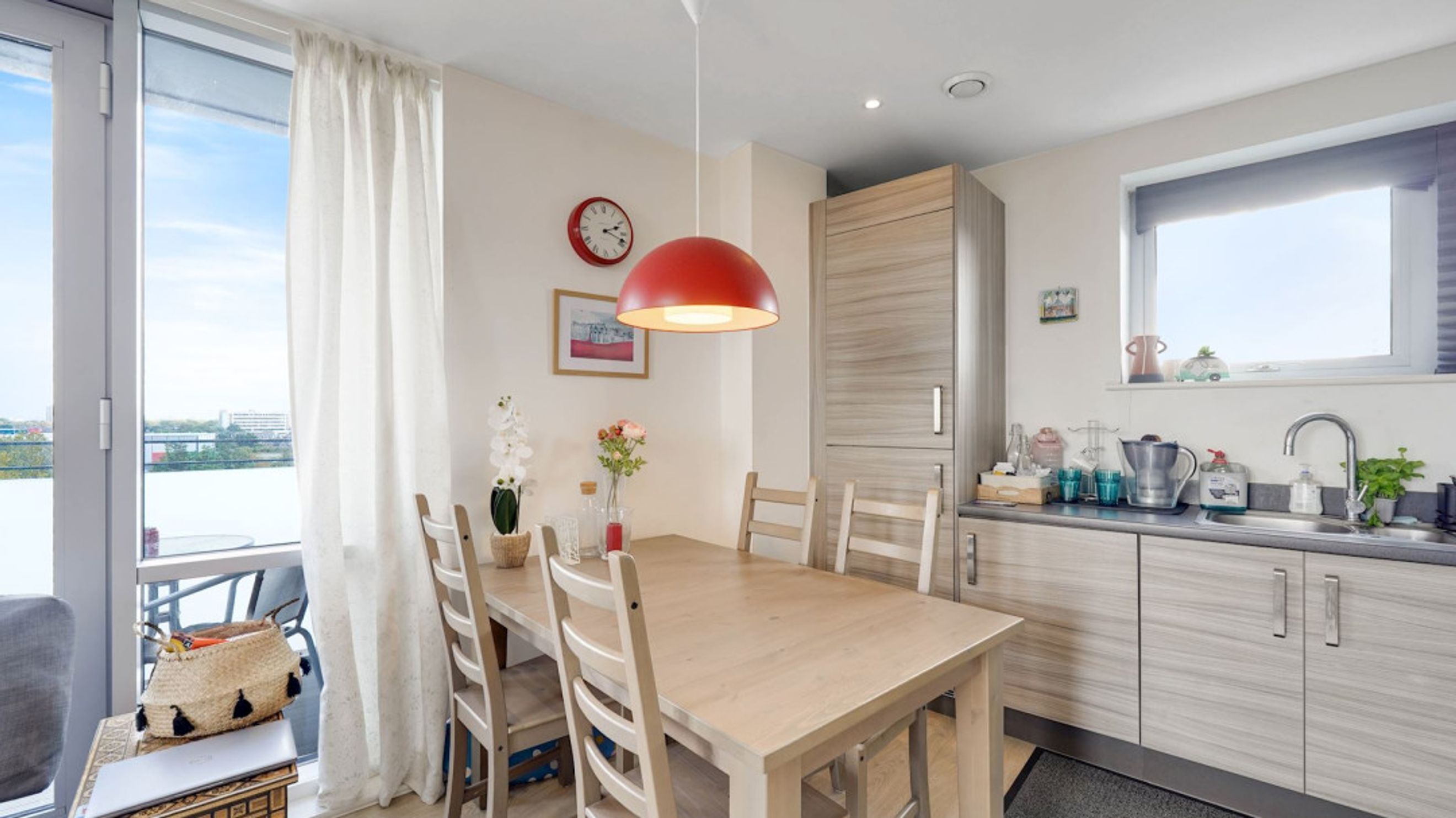 Flat 36, 3 Rick Robert's Way, London, welcomes you with its bright, modern charm and cozy ambiance. The bathroom invites with its warm recessed lighting and a stylish bathtub with shower, complemented by a sleek sink and toilet with bidet. The bedroom offers a snug retreat with glowing natural light from large windows and a chic ceiling fixture, plus a built-in wardrobe. The living room opens up with radiant floor-to-ceiling windows and soft recessed lighting, leading to a delightful balcony. The kitchen/dining area shines with natural light and elegant pendant lighting, featuring sleek cabinetry and a cozy dining nook. The hallway greets you with gentle overhead lighting and handy storage. The balcony enchants with its sunny views of the London skyline. The property benefits of an allocated parking space in a secure underground car park.