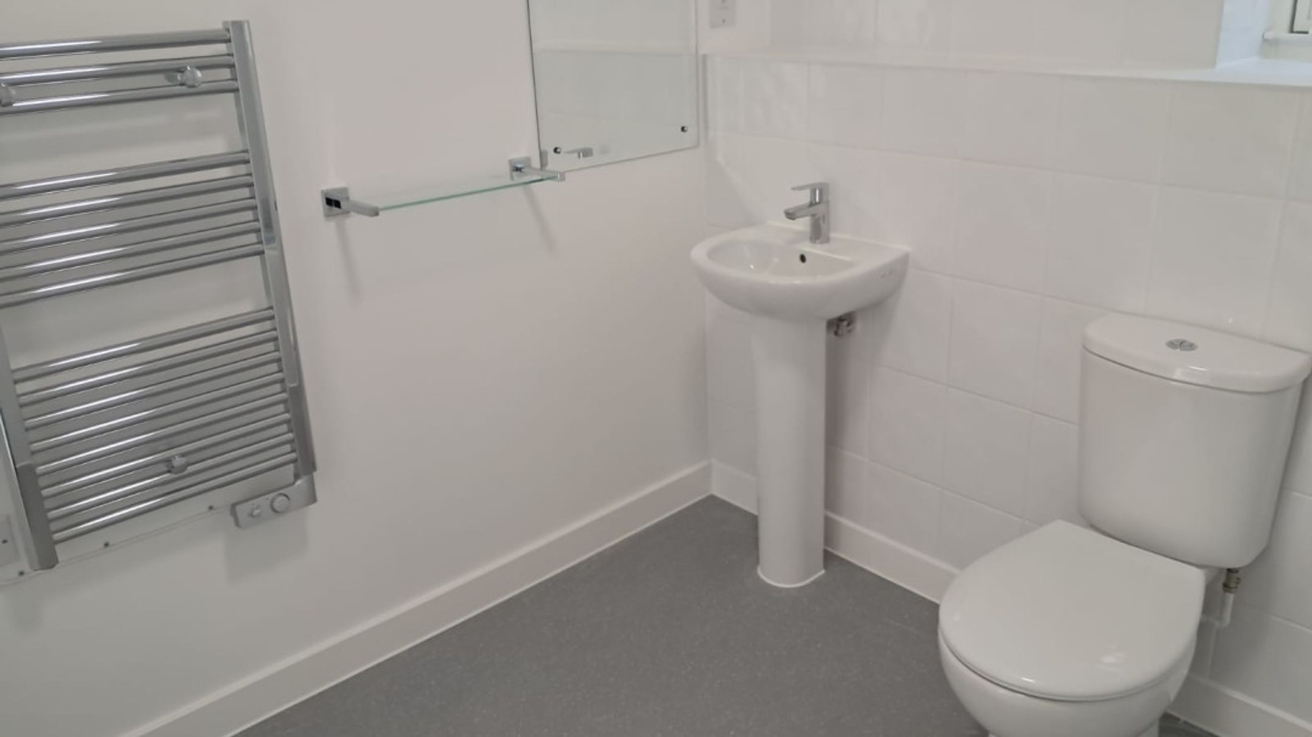 Flat 3 Potterill Court is 39m2 and located on the first floor. This property boasts a light kitchen/living area, one bedroom with fitted carpet, one bathroom, a private balcony, and large floor-to-ceiling windows, allowing for plenty of natural light.