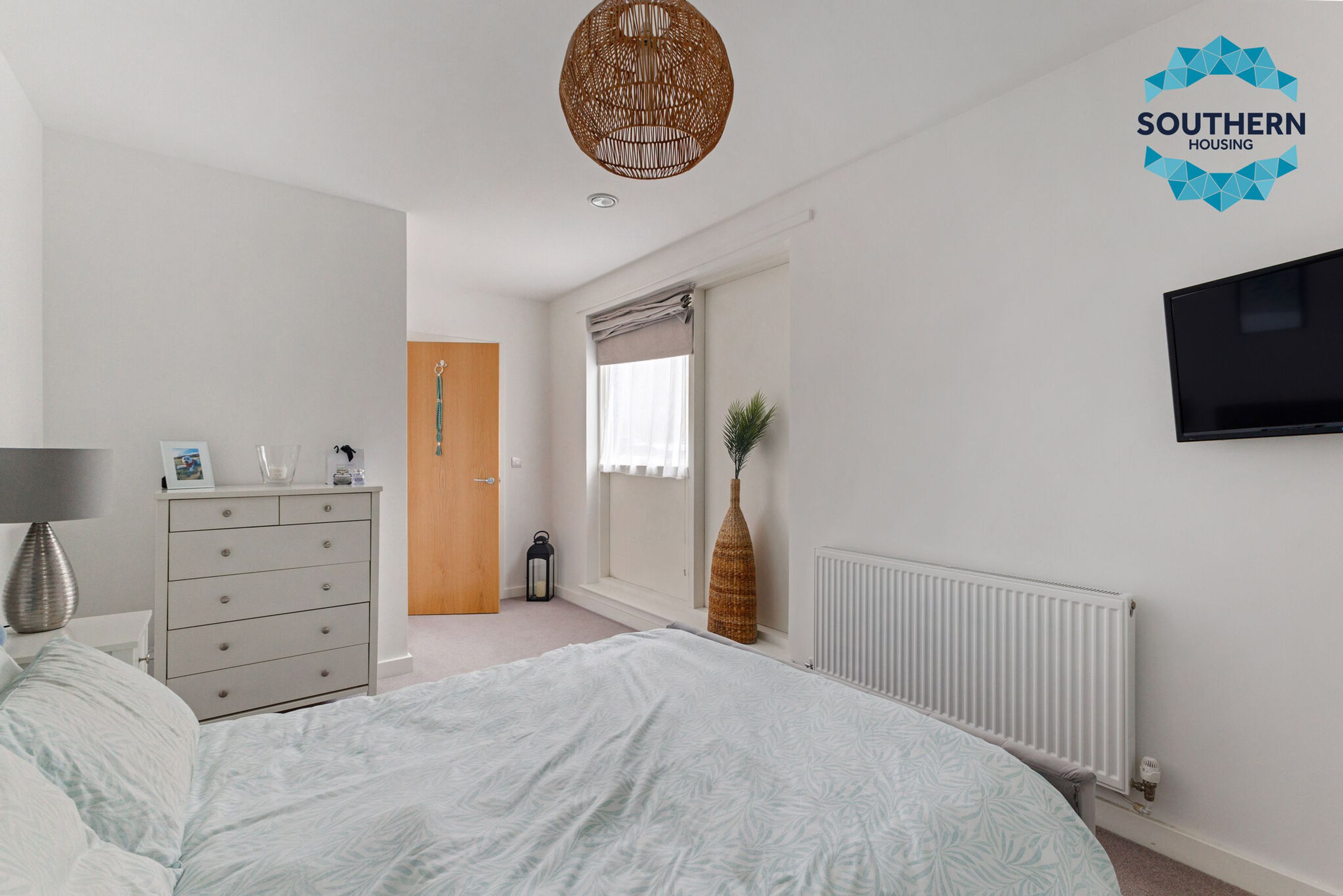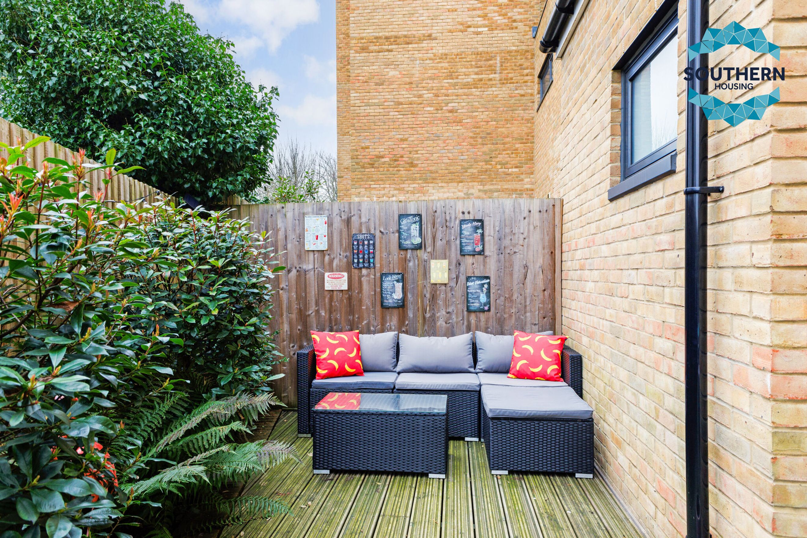 The heart of the apartment is the open-plan living space, which seamlessly combines the living room, dining area, and kitchen. This large, versatile area is filled with natural light, thanks to direct access to your own private decked garden. The garden is fully enclosed and accessible only through the property, offering a secure and secluded outdoor retreat ideal for relaxing or entertaining.