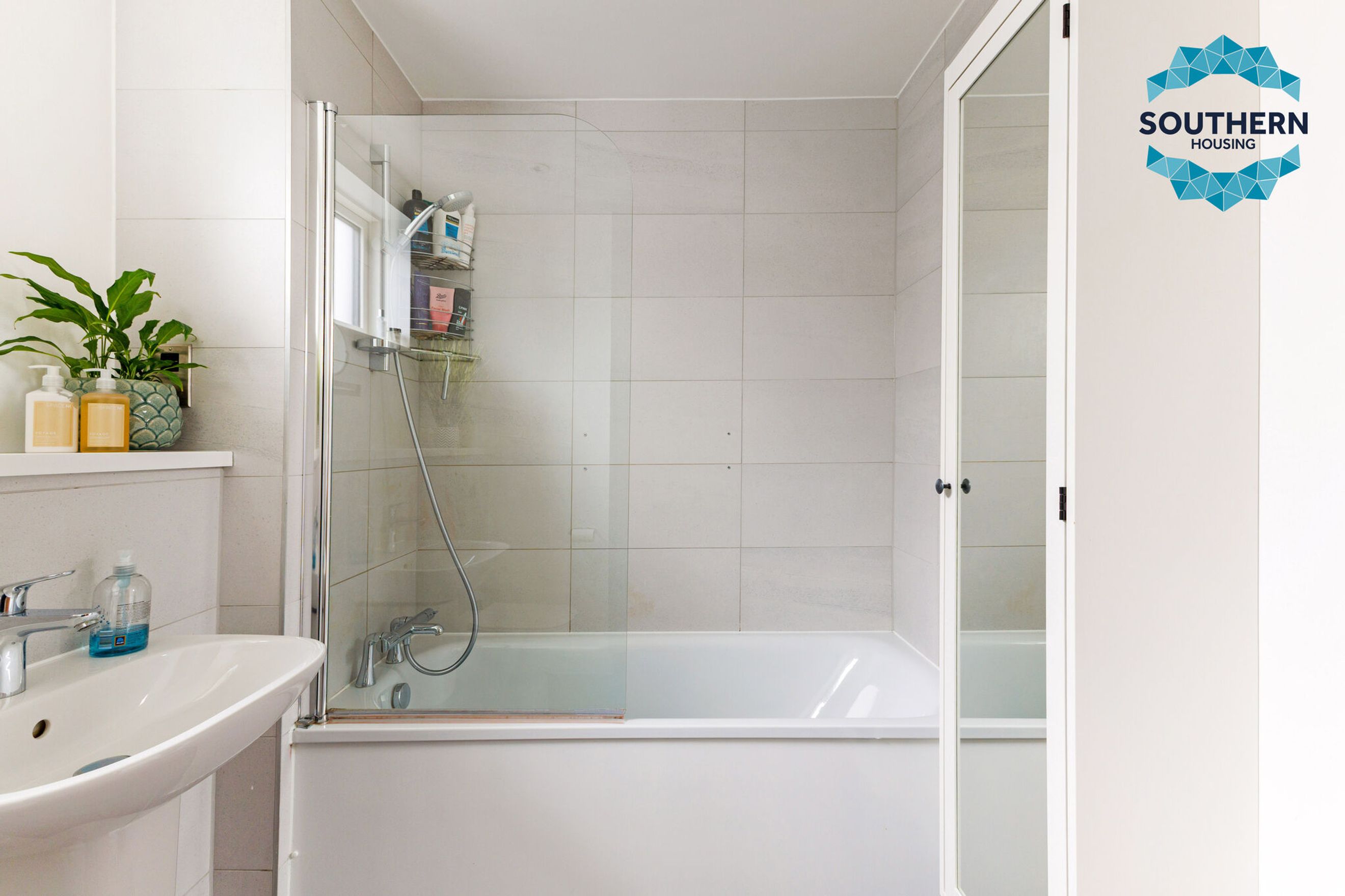 Completing the home is a contemporary family bathroom, which includes a shower over the bath and benefits from a window that brings in natural light and improves ventilation.