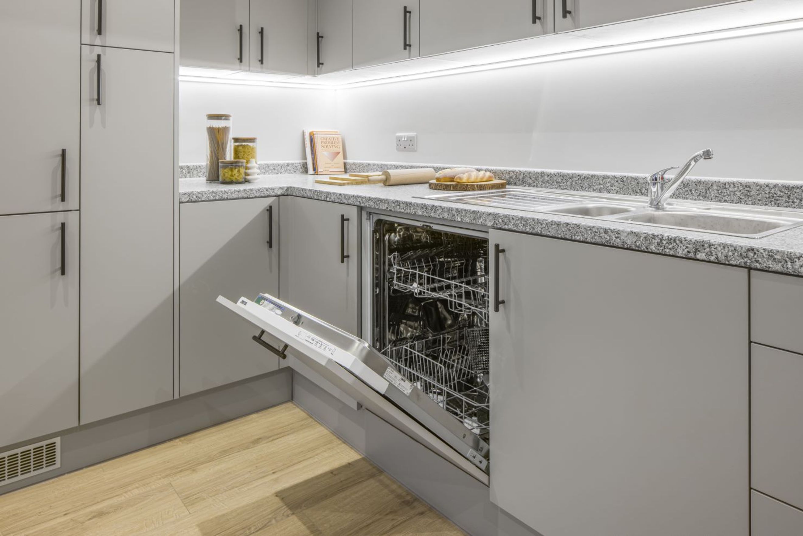 - A modern kitchen with integrated appliances