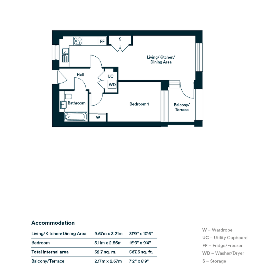 Frost House - Plot 153Ready to move into 1 bedroom first floor apartment. Monthly costs from £1,080^. Open plan living space leading to private balcony ideal for relaxing and entertaining. Integrated appliances and flooring included. Utility cupboard for additional storage. Access to landscaped podium garden, residents' gym, co-working space hub, concierge and post-room. Short walk to Barking Riverside Overground station for Suffragette line services to central London. Uber Boat operating daily from Barking Riverside Pier.