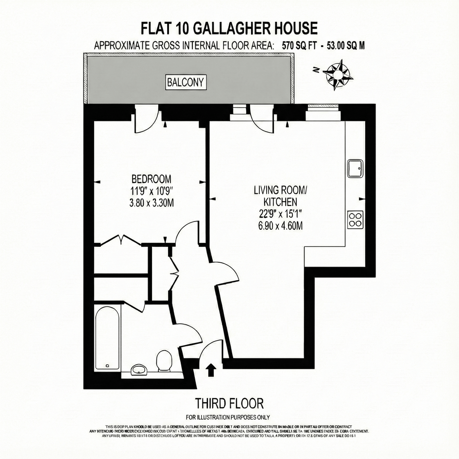 The approximate gross internal floor area is a comfortable 53.00 sq m.
