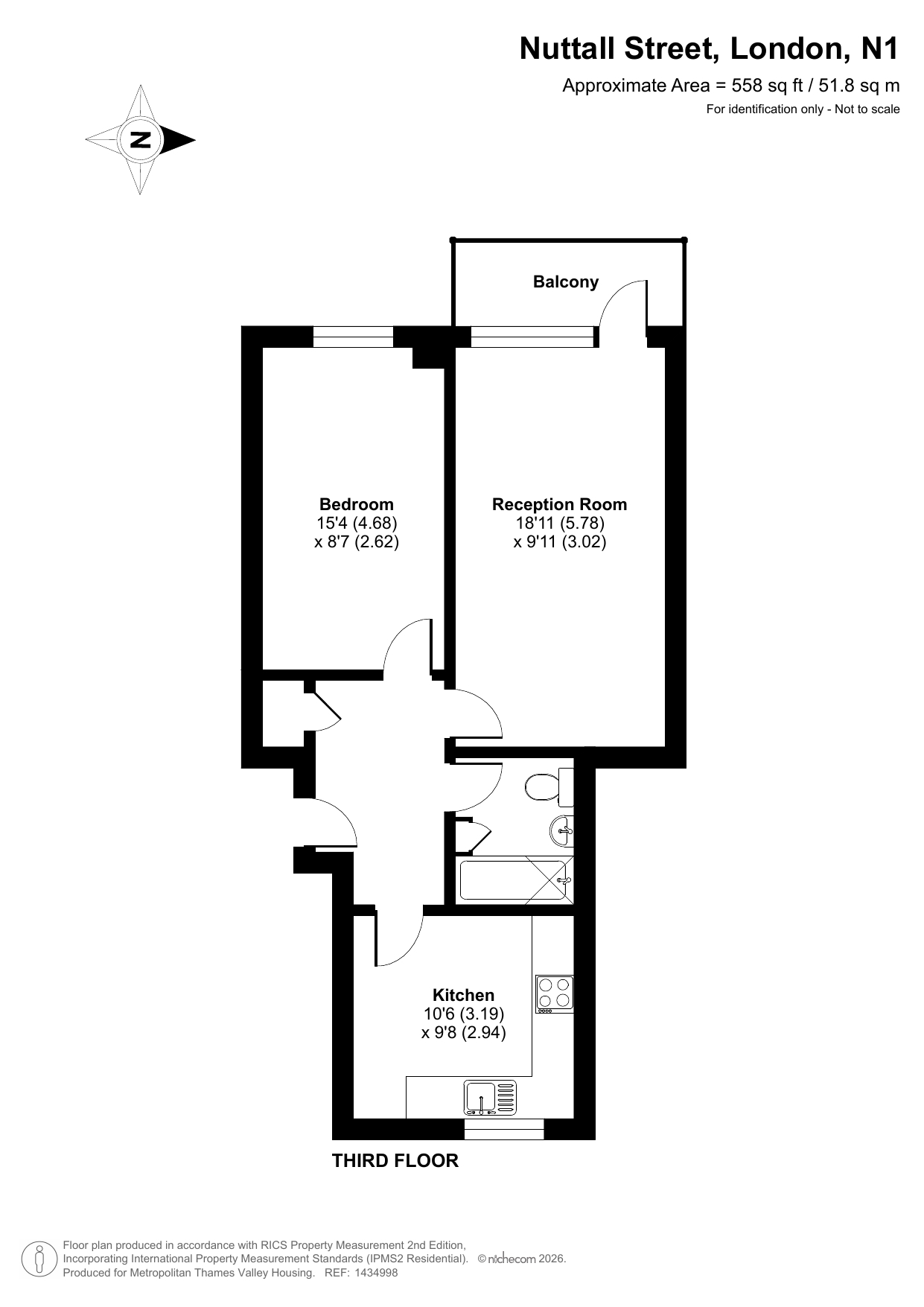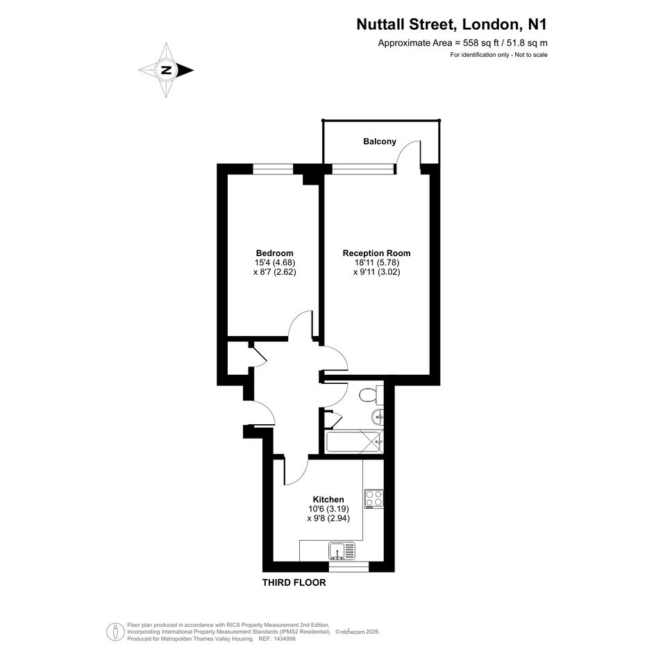The property features a reception room, a separate kitchen, one bedroom, and one bathroom.