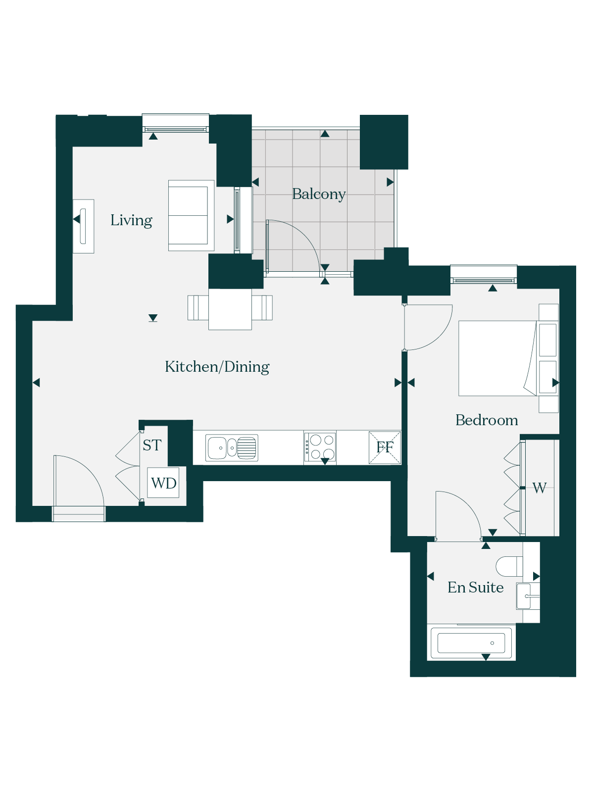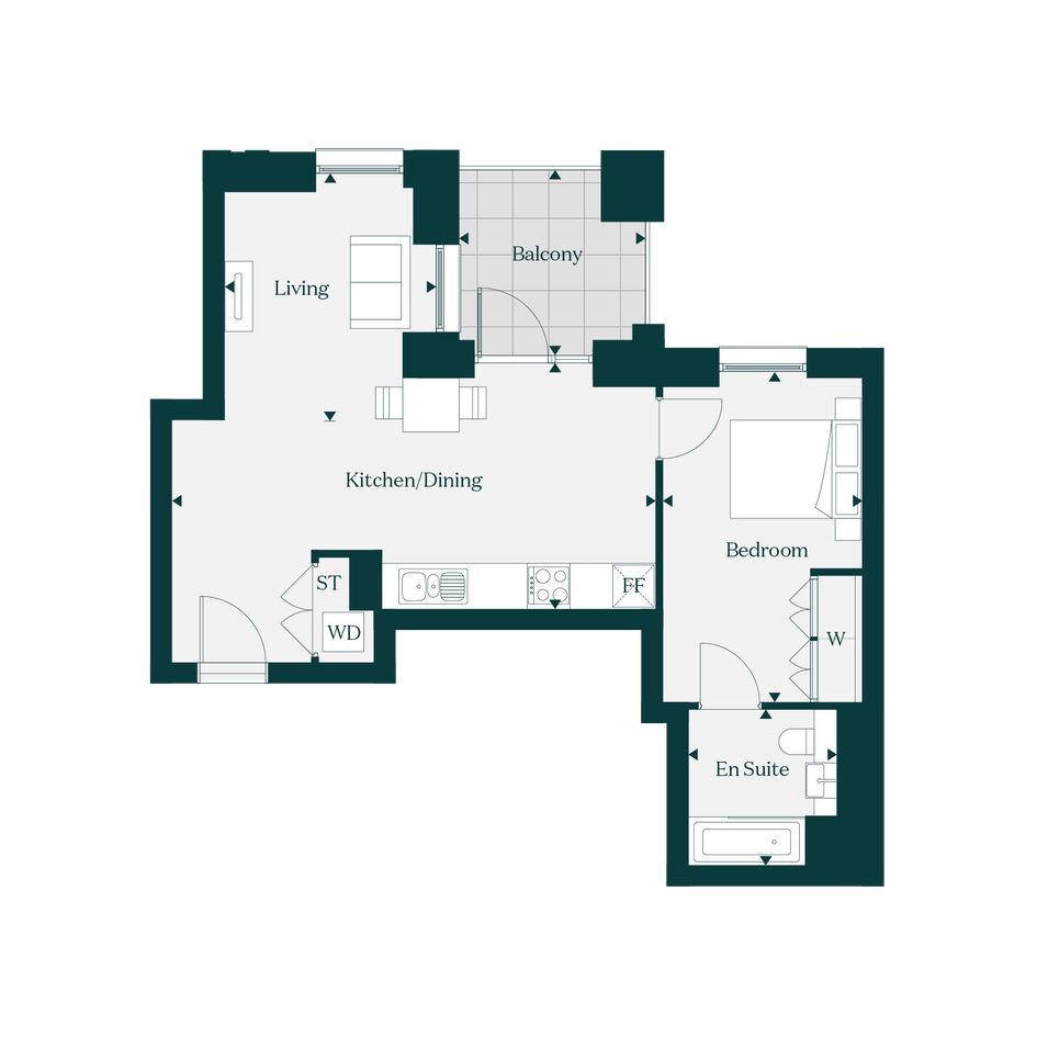 The Holly apartments at The Verdean are fantastic 1-bedroom homes all ready-to-move-into offering 630 sq. ft. of open-plan living space with a private balcony.